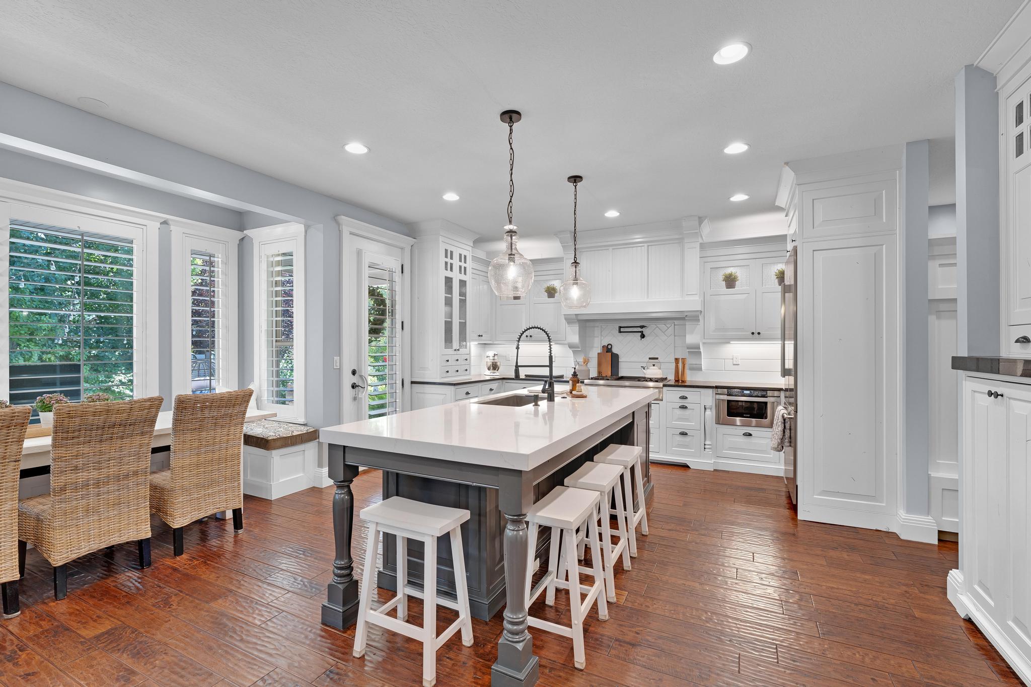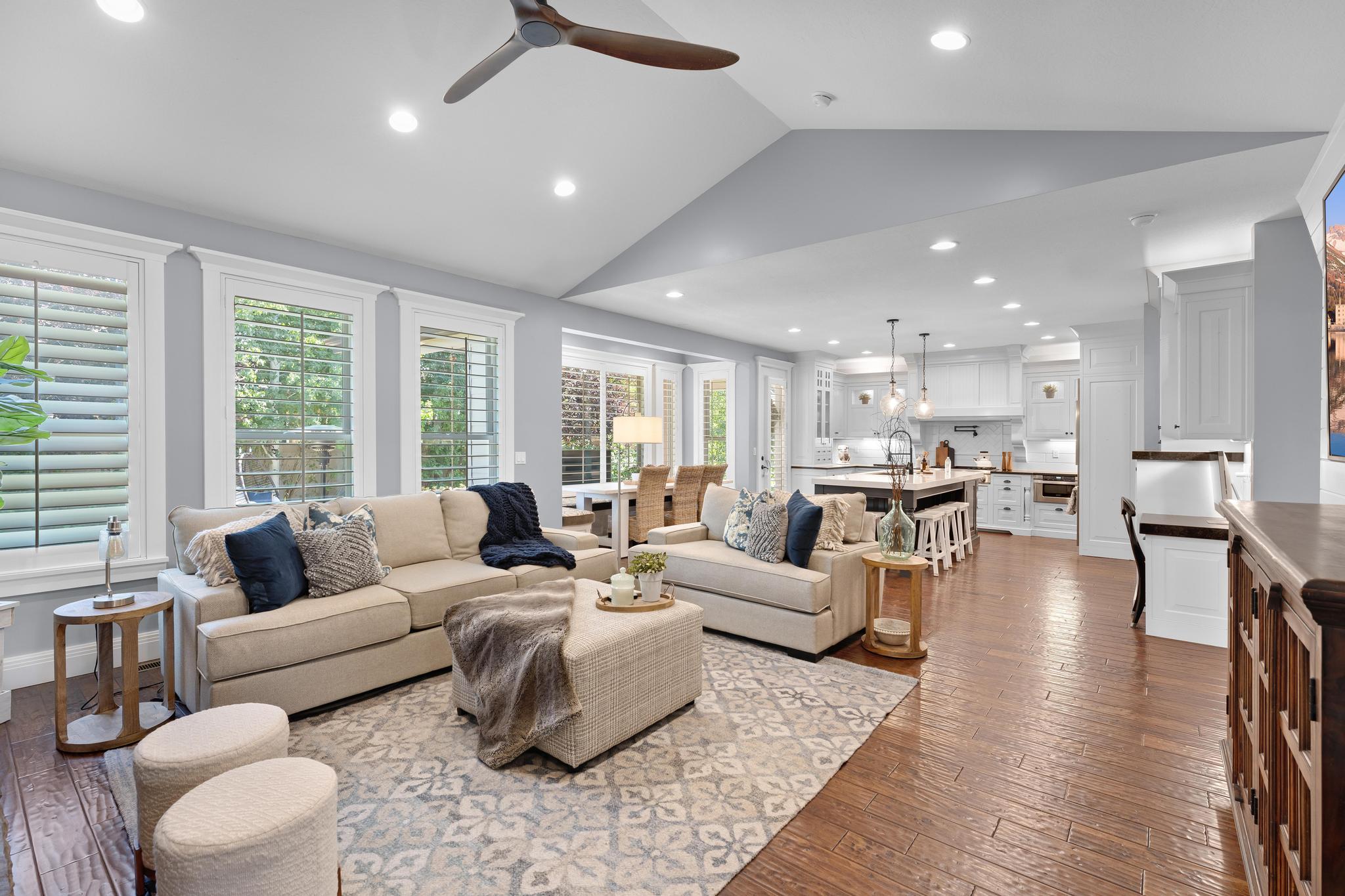 With four additional bedrooms, two bathrooms, a large and cozy family room, gym and upstairs bonus room, there's space for the whole family. Finally, rounding out this stunning corner lot home is the three car garage, finished with epoxied floors, painted walls, built in storage, air compressor, and power washer.
