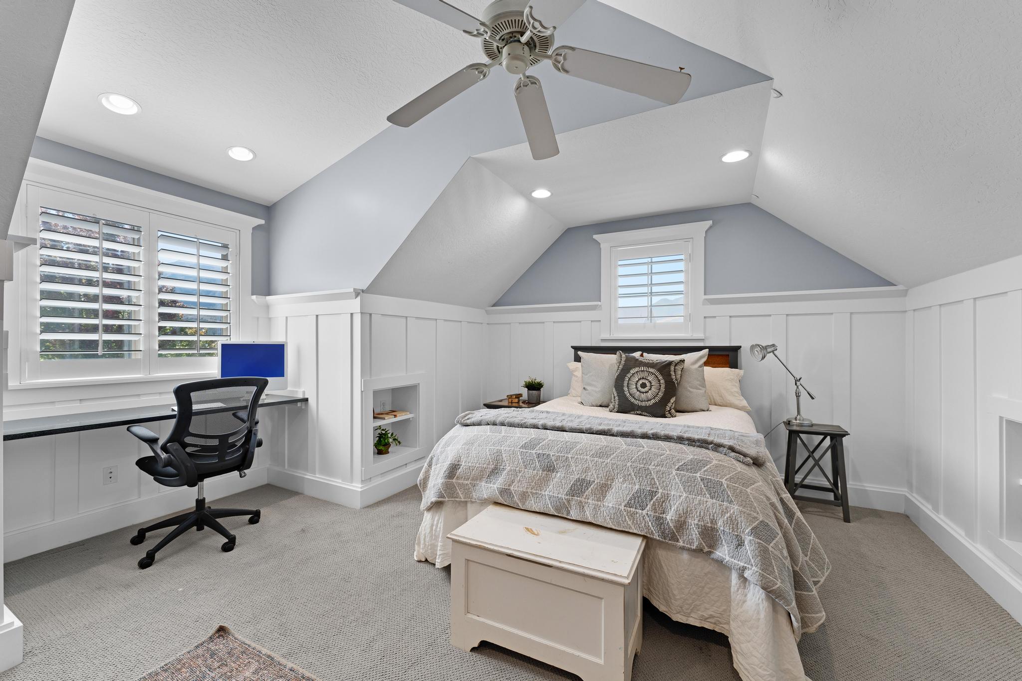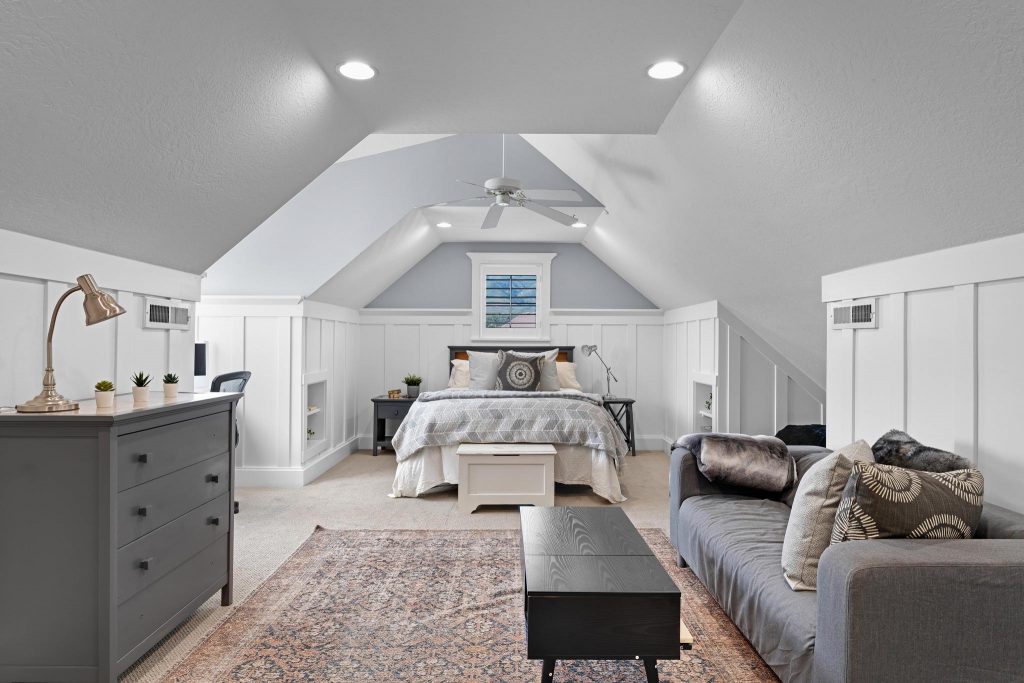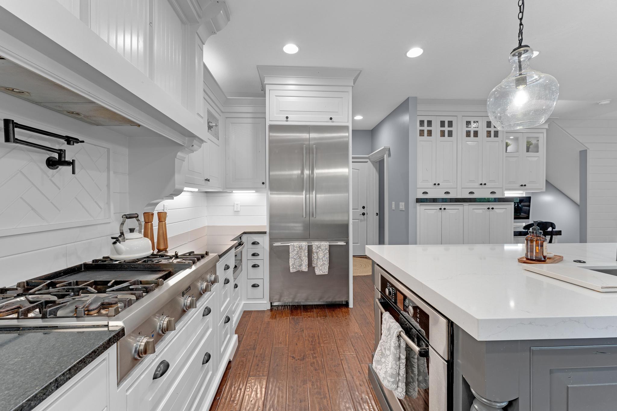 The high-end kitchen is thoughtfully designed with inset cabinet fronts, quartz countertops, brand new dishwasher and refrigerator. You will love the built in dining nook and entertaining in the open living space with vaulted ceilings.