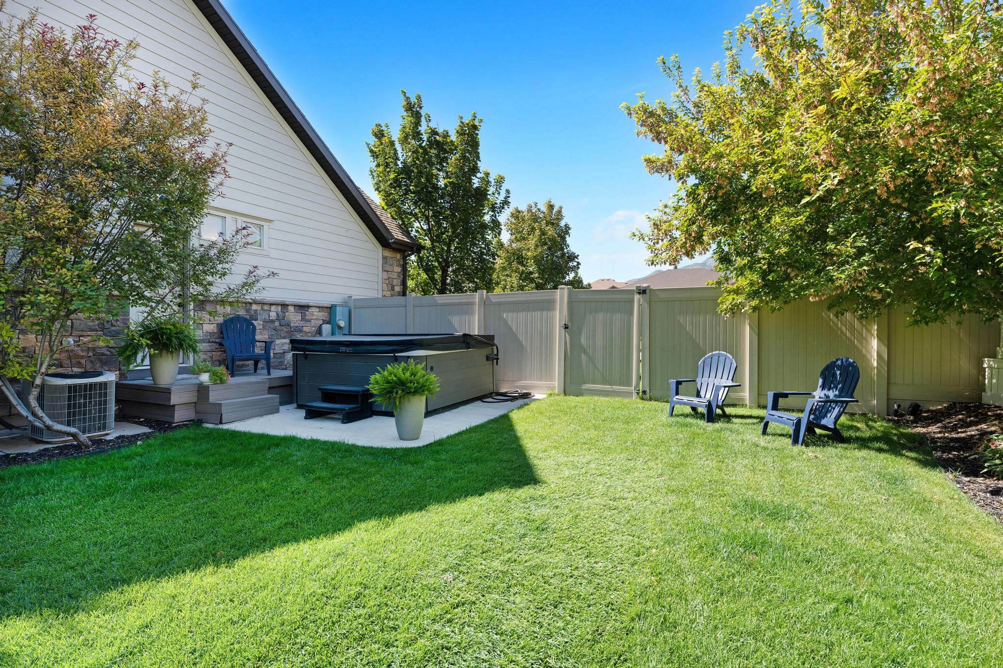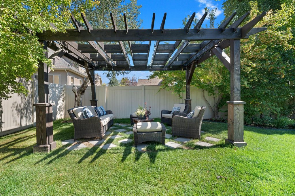Retreat to the large master bedroom with ample closet space and private ensuite, or enjoy the hot tub in your private backyard with convenient access off the hall bathroom. Your outdoor living spaces off the kitchen include a covered and uncovered patio and pergola.